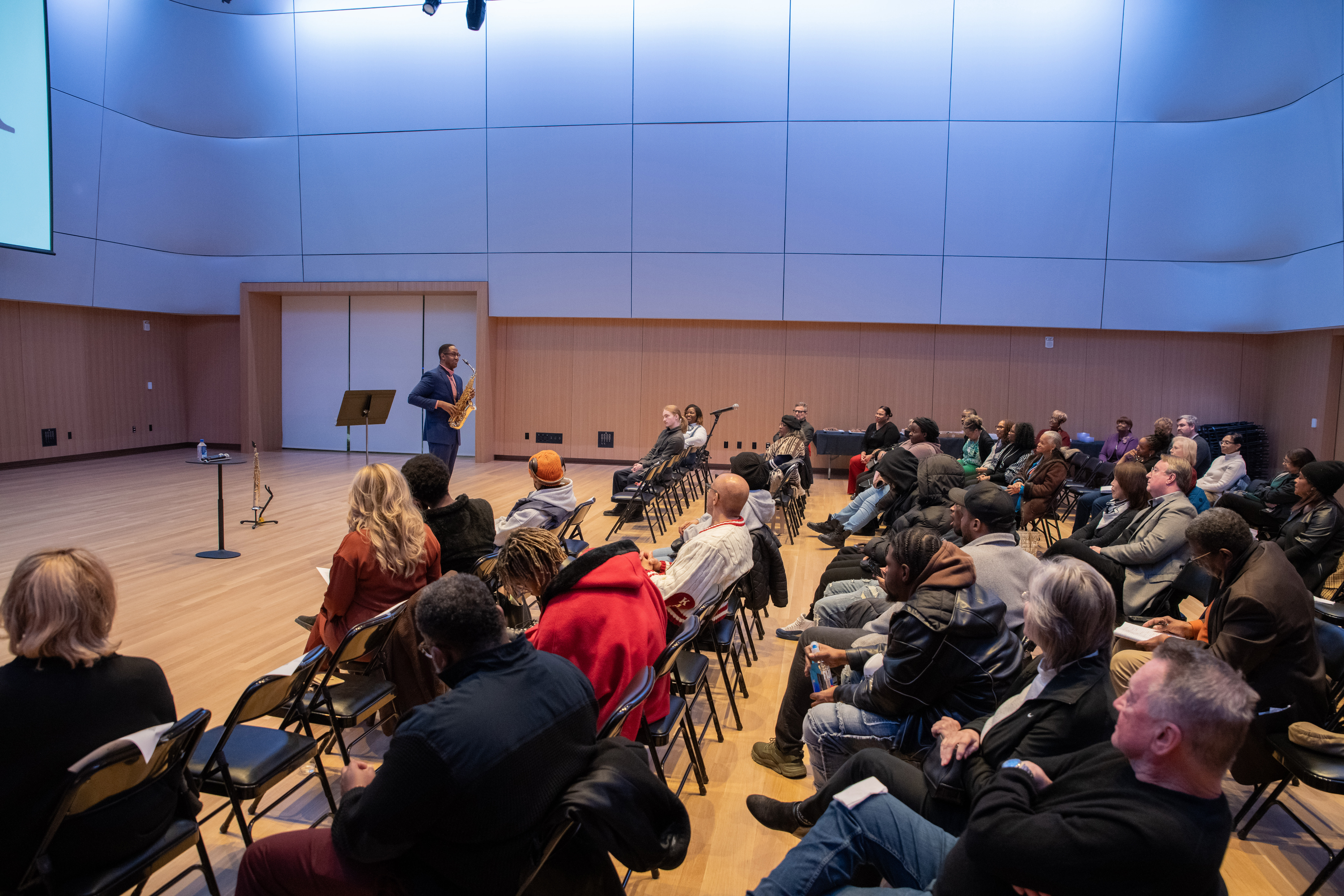 February 3 – Saxophonist Steven Banks hosted a community event in the Steward Family Education and Learning Center as part of his Come As Your Are Initiative. The initiative connects symphonic music with historically underrepresented people in the concert hall, making the space welcoming and accessible to all. (Photo by Phillip Hamer)